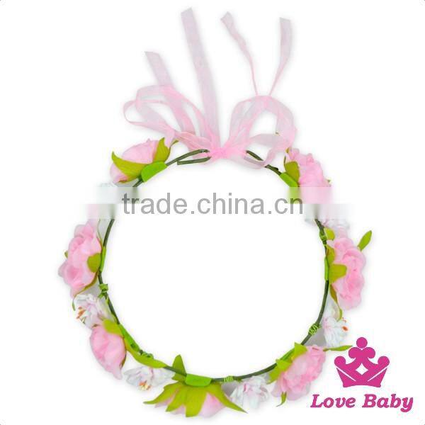 FGA046 Lovebaby Best Selling Cheap Plastic Pink And White Flowers With Green Leaf Adult Girls Accessory Product
