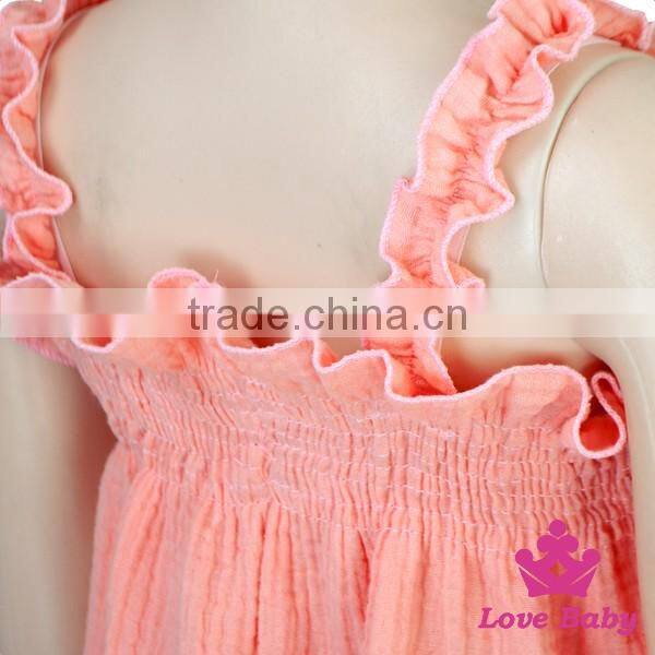 2017 Spring Boutique Clothing Plain Red Cotton Lace Trumpet Sleeves Design Baby Girl Dress