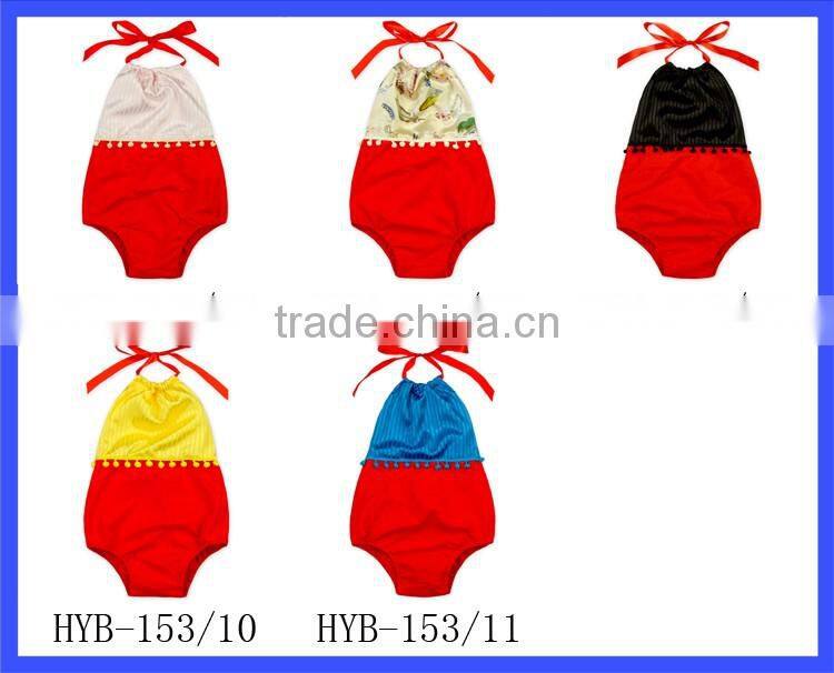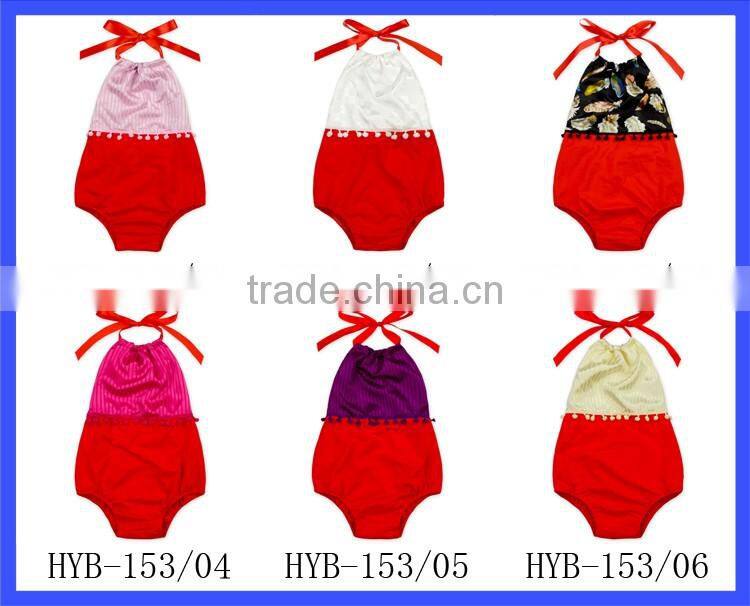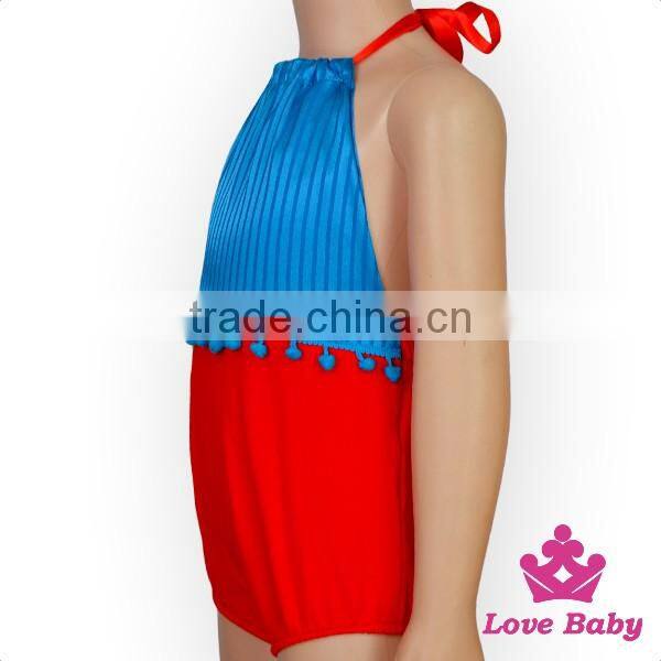 Lake Little Girl Clothing Plain Blue And Red Halter Infant Newborn Pom Blank Bodysuit Baby Romper