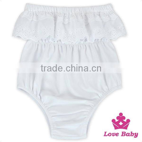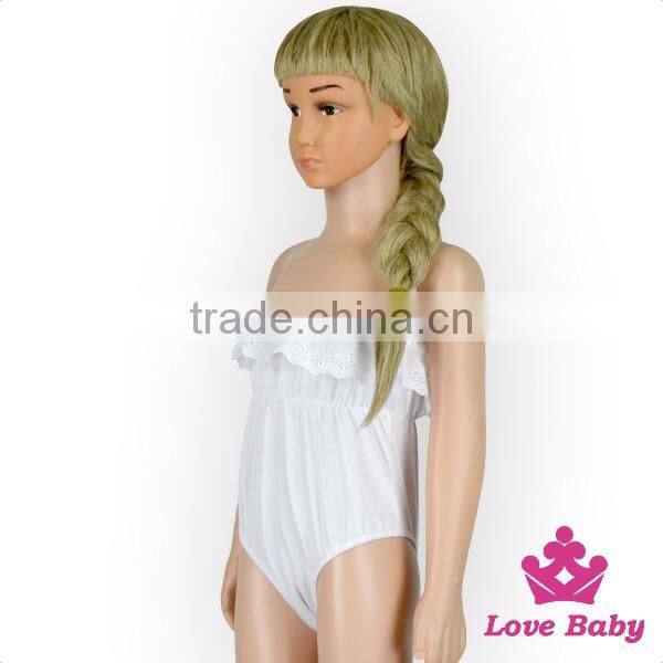 Solid White Color Baby Romper Infant Shoulder Lace Trim Sleeveless Romper Clothes Knit Cotton Baby Romper Pearl Top