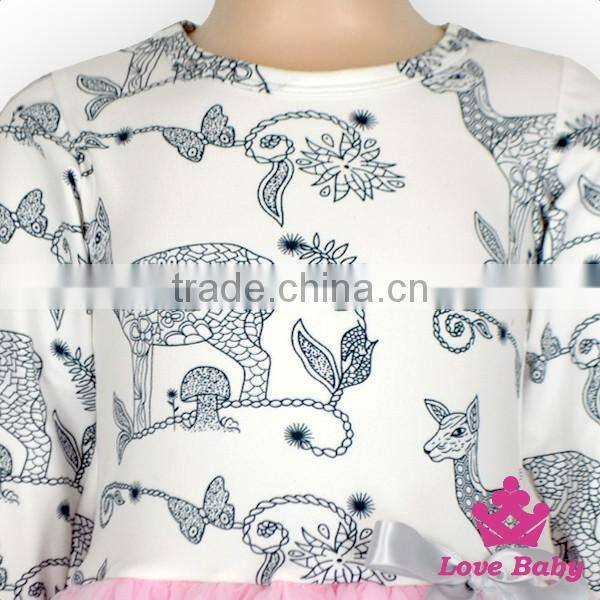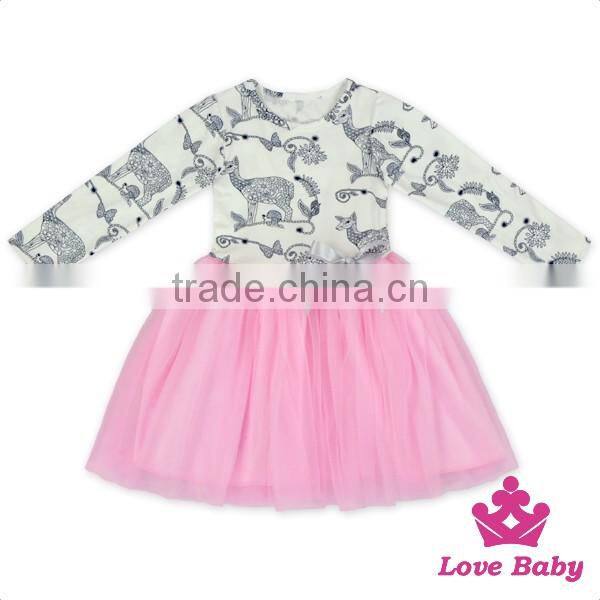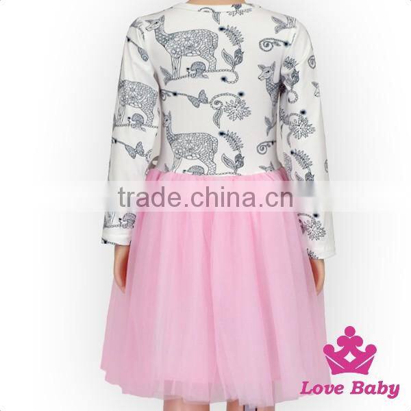Home > Products > Tutus > Romantic Spring Children Clothing Frock Design Long Sleeve Pattern Printed Baby Girl Pink Tutu Princess Dress