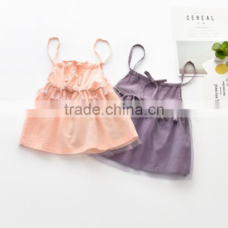 S33537W Summer Dress Girl Tutu Cotton Vest Tassels Princess Dress