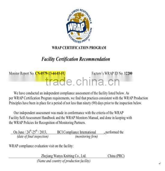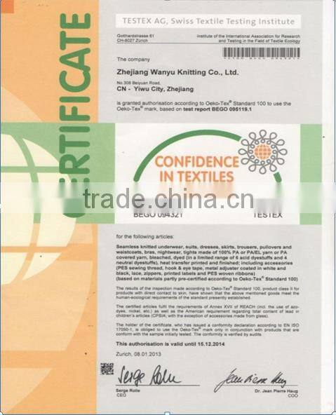 Zhejiang Wanyu Knitting Co., Ltd. was established in 1996, and is specialized in developing and manufacturing seamless underwear. Wanyu enterprise is located at No.308 Beiyuan Road, and we have self export & import license. Our products are quite popular in the international markets. We have successfully attained ISO9001:2008 Quality Management System certification, Oeko-Tex Standard 100 Certification, Registration Certification, Good Standardizing Practice Certification and ISO14001:2004 Certification and fully implemented ERP system in the whole process. We have cooperated with renowned customers all over the world, such as LIDL, PLAYBOY, PRIMARK and F&F MOREA. We are equipped with 200 sets of advanced Knitting Machines (SANTONI) imported from Italy and 400 sets of Sewing Machines imported from Japan. We have standard workshops covering more than 100,000 square meters and more than 1000 staff members. Our monthly production capacity reaches 15,000,000pcs. We also accept OEM orders or make a new product according to your design. If you have pictures or samples, you can send them to us. We will manufacture products as your specifications and requirements. We sincerely welcome customers to visit us, and always offer our first class services and high-quality products at competitive prices. Let's grow together on a win-win basis.