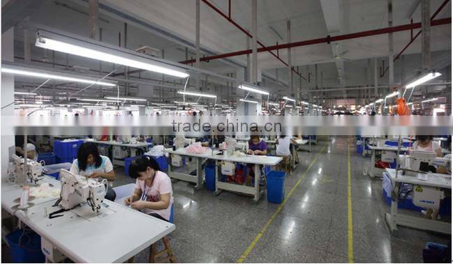 Wanyu seamless clothing manufacturing center has 260 sets of SANTONI seamless knitting machines(gauge ranges from 11" to 18"), 400 sets of Brother and Feiyue sewing machines, and about 800 experienced workers