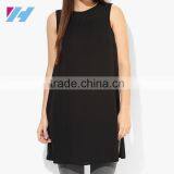 Ladies Simple Fashion Clothing 2016 Sleeveless Black Chiffon One Piece Dress