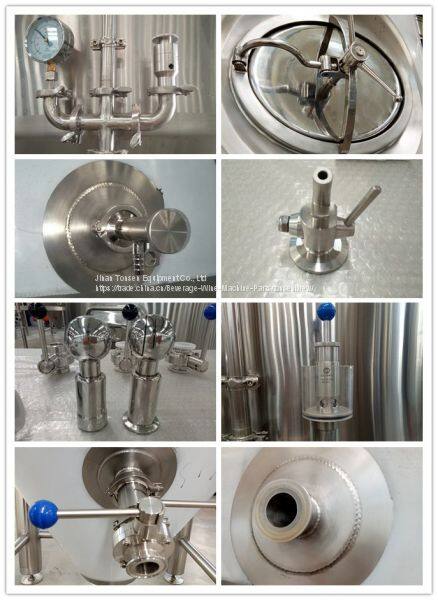 Fermentation tanks body is provided with a sandwich or cold, heating, cooling temperature. Fill the tank with the top and bottom head(or cone) are used spinning R-angle-grinding, polishing tank wall, no health corners, and fully enclosed design ensures that the material is always under a pollution-free status of the mixing, fermentation, air breathing apparatus with hole, CIP cleaning nozzles, manholes and other devices