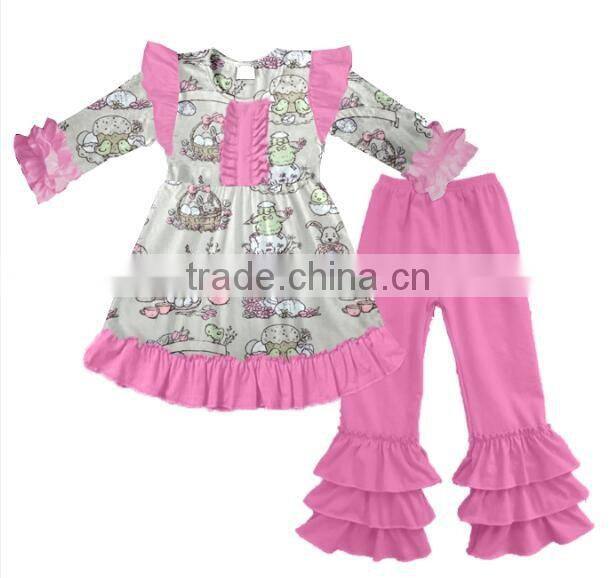 Wholesale Children Outfit Easter Bunny Printed Boutique Clothing Baby Girl Boutique Clothing With Pink Pants