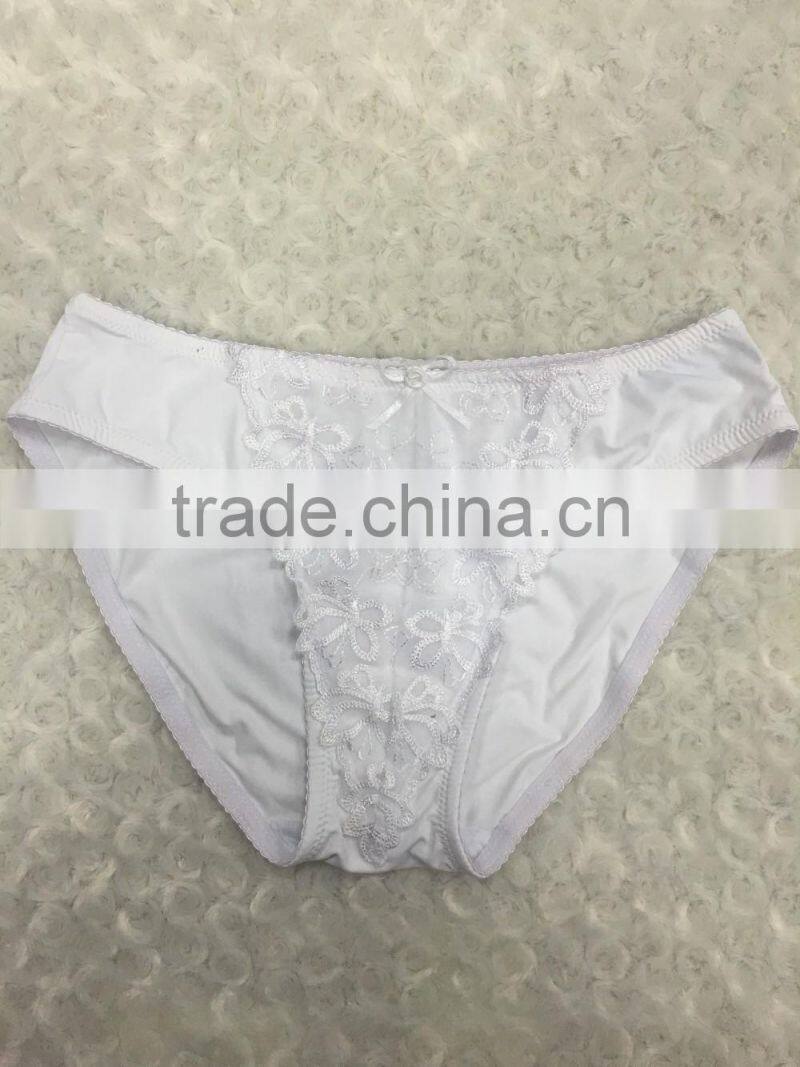 New Design Young Ladies White Embroidered Blue Bow Bra and Panty Set