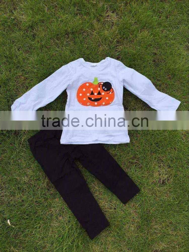 boys long sleeves Halloween pumpkin print pant kids boutique outfits kids suit with matching necklace and headband