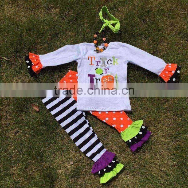 The Halloween Kids Girls Gost Print OUTFITS Ruffle Pant Sets Girls Boutique Clothes Kids Sets With Matching Accessories