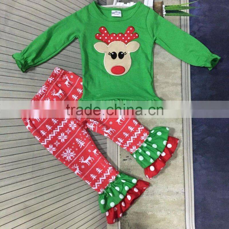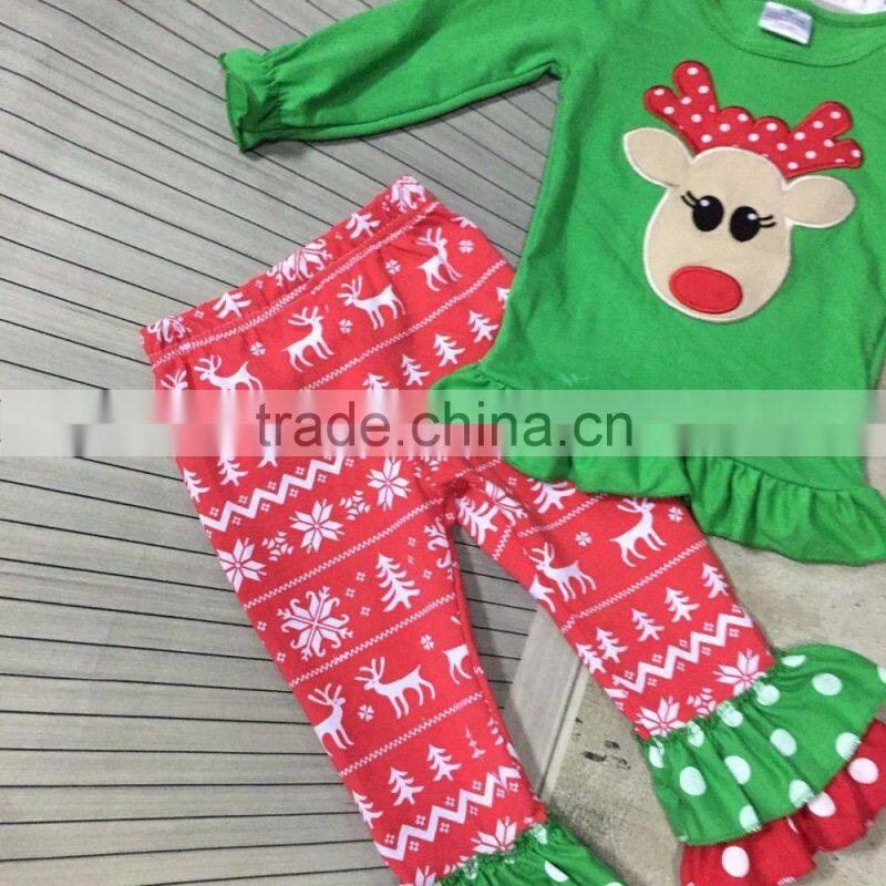Christmas New Design X-mas Outfits Baby Kidswear Reindeer Leopard Clothes Red/white Dot Ruffle Pant With Accessories