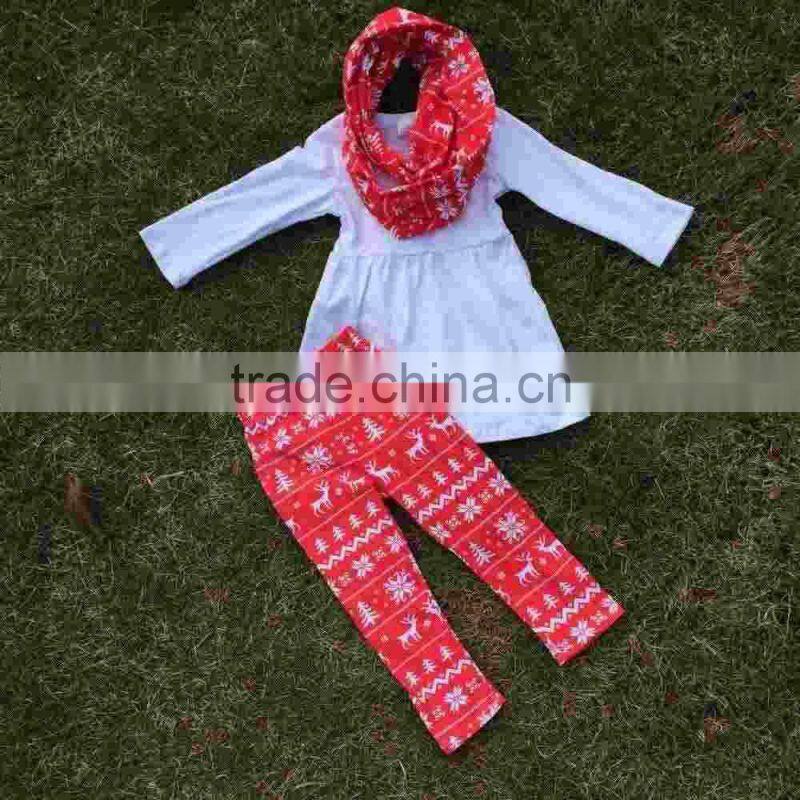FALL OUTFITS persnickety girls 3 pieces scarf sets girls Christmas reindeer pants sets kids reindeer clothes kids white top sets