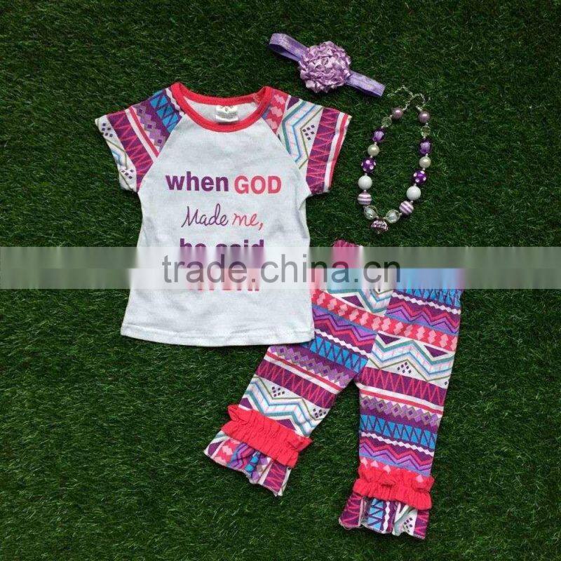 baby girls clothing sets Kids clothing wholesale summer girls boutique aztec when god made me he said "TA-DA" outfits