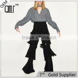 2017 Spring Womens Elegant Fancy Side Zip off Frilled Long Dress Pants