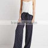 Striped Drawstring Rayon Casual Wide Leg Pants for Ladies Custom Pants