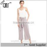 China Suppliers Women Tie Waist Trim Gaucho Pants