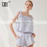 Two Piece Tie Shoulder Casual Women Linen Tank Top and Shorts Clothing Set