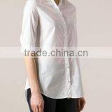 White Cropped Sleeve Design Cotton Office Lady Shirt