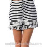 Fashion Summer Women Stripe Rufflt Trim Shorts