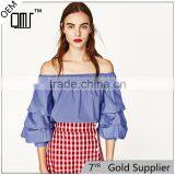 2017 OEM Spring Cute Pleated Vertical Stripes Off Shoulder Blouse