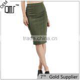 2017 OEM Ladies Fashion Midi Tube Khaki Skirt With Side Metal Detrails