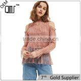 2017 OEM Spring Romantic Pink Lace Frill Strapless Women's Blouses