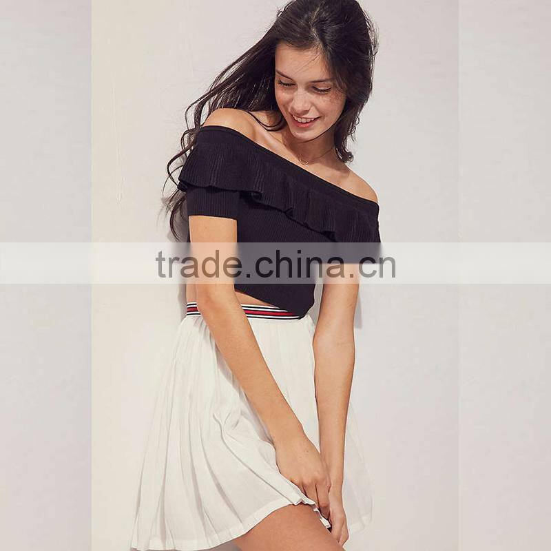 Home > Products > OEM Skirts > Latest Pleated Short Skirt and off Shoulder Ruffle Crop Top Set
