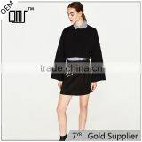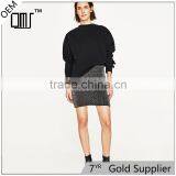 2017 OEM Spring Retro Crepe Black Bonded High Waisted Midi Skirt