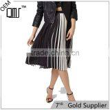 2017 OEM Spring Retro Monochrome Stripe Pleated Midi Skirt