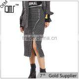 2017 OEM Spring Retro Frayed Hem Splited Checkered Skirt
