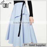 2017 OEM Spring Pure Wathet Blue Layered Long High Waisted Skirts