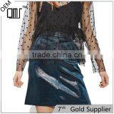 2017 OEM Spring Knee Length Navy Blue Foil Spotted Sequin Skirt