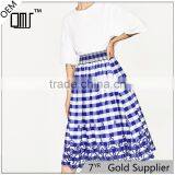 2017 OEM Spring Midi Flounce Plaid Skirt With High Elastic Waist
