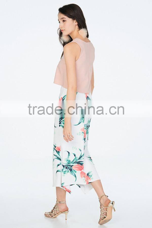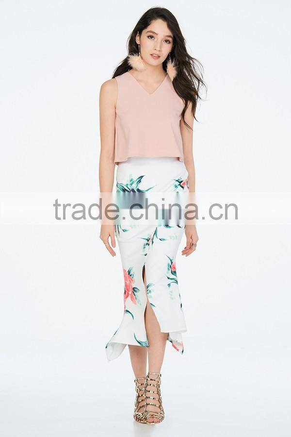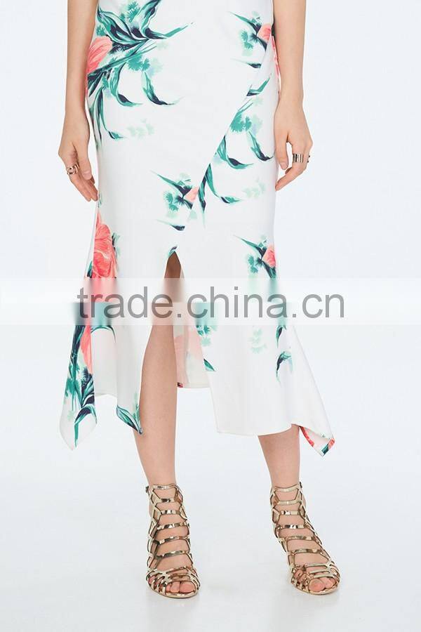 2017 OEM Photo Ladies Floral Print Long Maxi Side Slit Skirt