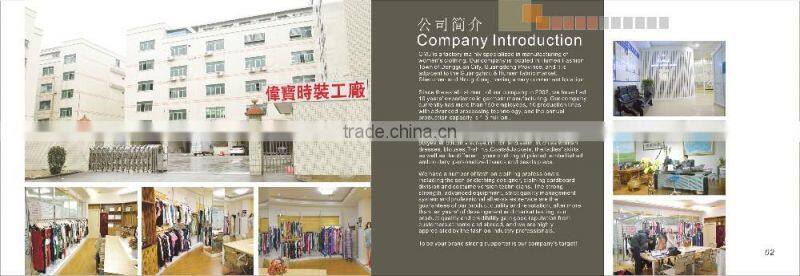 We are a manufacturer of ladies ' fashion clothing with well-equipped testing equipment and strong technical force. With a wide range, good quality, reasonable prices and stylish designs, our products are extensively used in female fashion industry and other industries. Our products are widely recognized and trusted by users and can meet continuously developing economic and social needs. We welcome new and old customers from all walks of life to contact us for future business relationships and achieving mutual success!