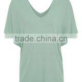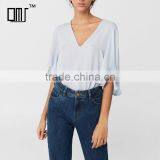 Batwing V Neck Bodysuit Women Casual Frill Sleeve Blouse Designs
