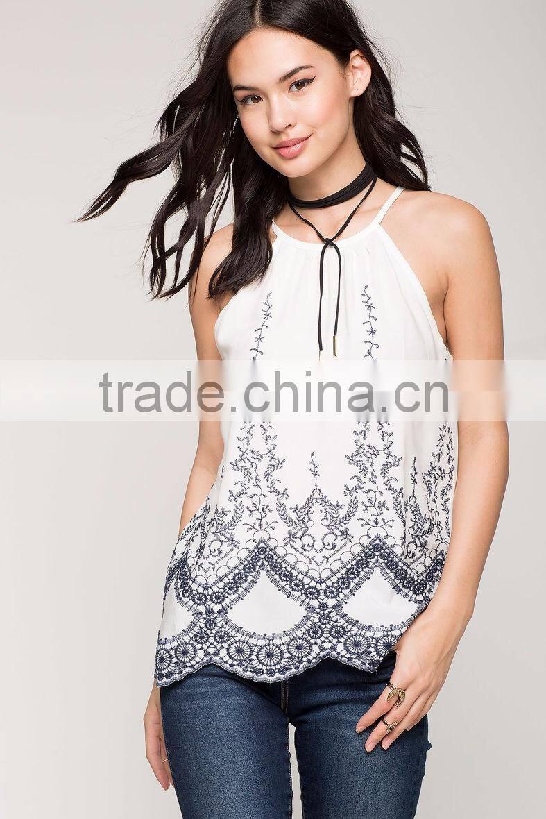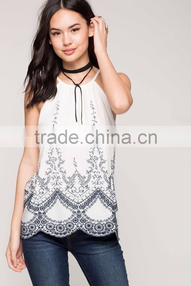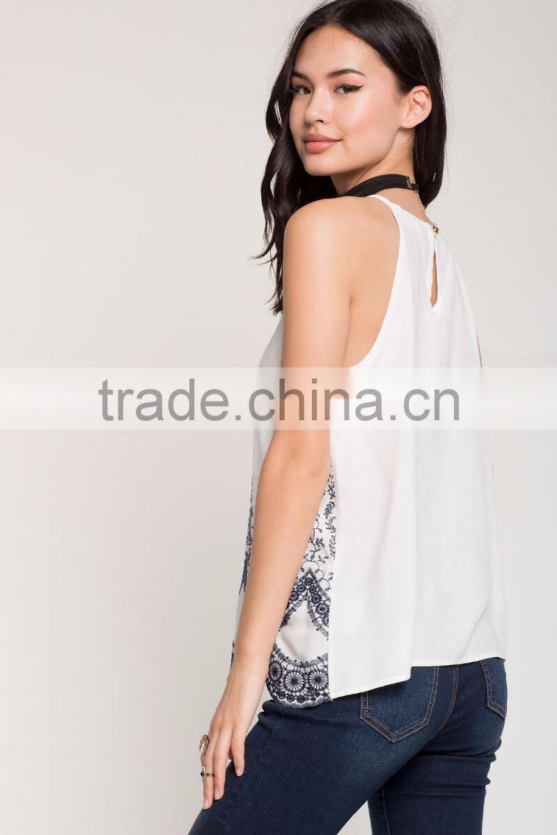 Women Blouse Sleeveless Casual Tops Flower Lace Embroidered Summer Style 2015 Blouses