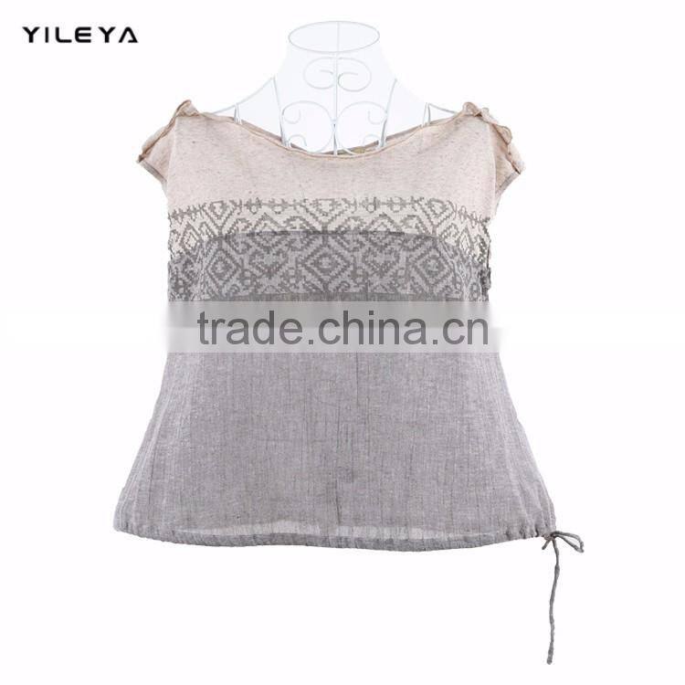 High Fashion Summer Short Sleeve Lace Printed Designed Crochet Top Fashion Blouses 2015, Design Short Sleeves Elegant Blouses
