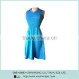 Sky-blue Knit Tennis Stripes Elastic Waist Golf Dress for Ladies