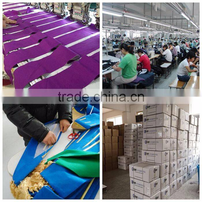 we have been creating custom graduation gowns, stoles, hoods, sashes, caps, tassels, diploma tubes and much more, using the high quality fabrics with tech. of Embroidery, Printing, Tapestry etc, and carefully workmanship in each piece. We have quality control team to check quality from fabric to packing. we can match colors, sizes and designs as well as your requirements.