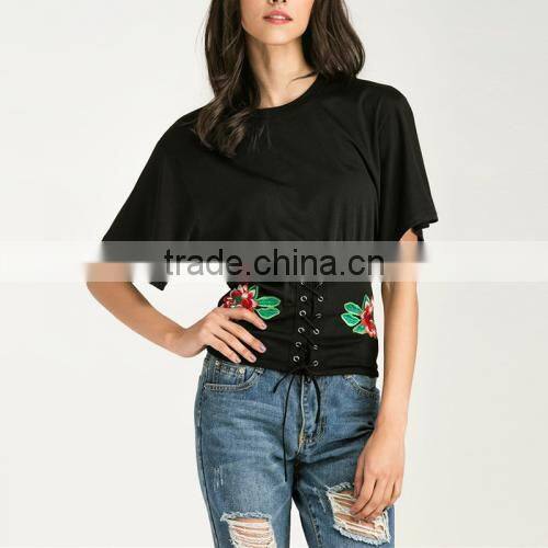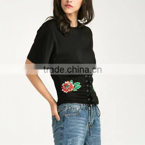 2017 Cotton Lace Up Women Short Sleeve T-Shirts