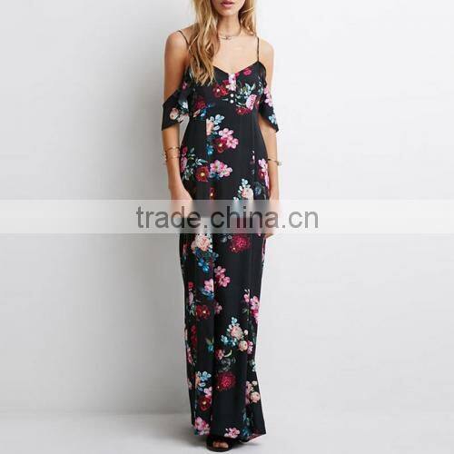 Slip Dress Backless Printed Leaf Pattern New Ladies Fashion Dress Design 2017 Girls Dress
