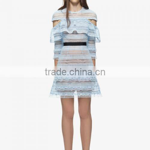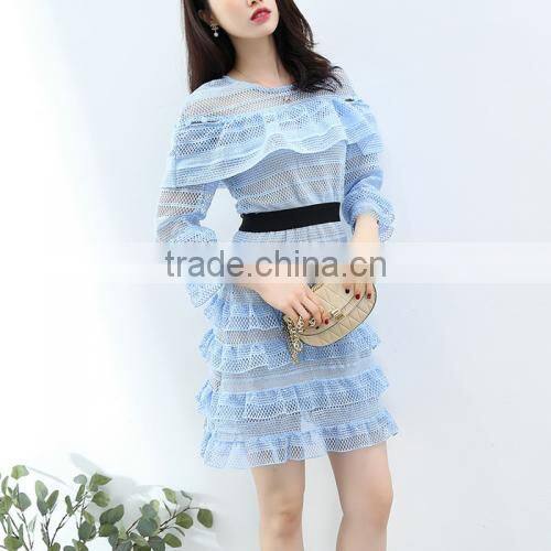 2017guangzhou Women Lace Hollow Patchwork Dress