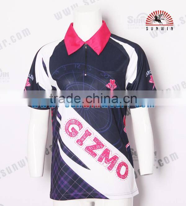 Home > Products > Sunwin Orignal Brand > Fashionable Womens Custom Dart Shirt / High Quality Sublimation Beautiful Girls Dart Jersey
