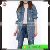 2017 Custom Ladies Destroyed Long Ripped Denim Jacket Fashion Stylish Jean Jacket