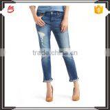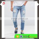 2017 Hot sale Custom distressed Ripped Skinny 100%cotton denim jeans trousers slim fit washed denim jean pants