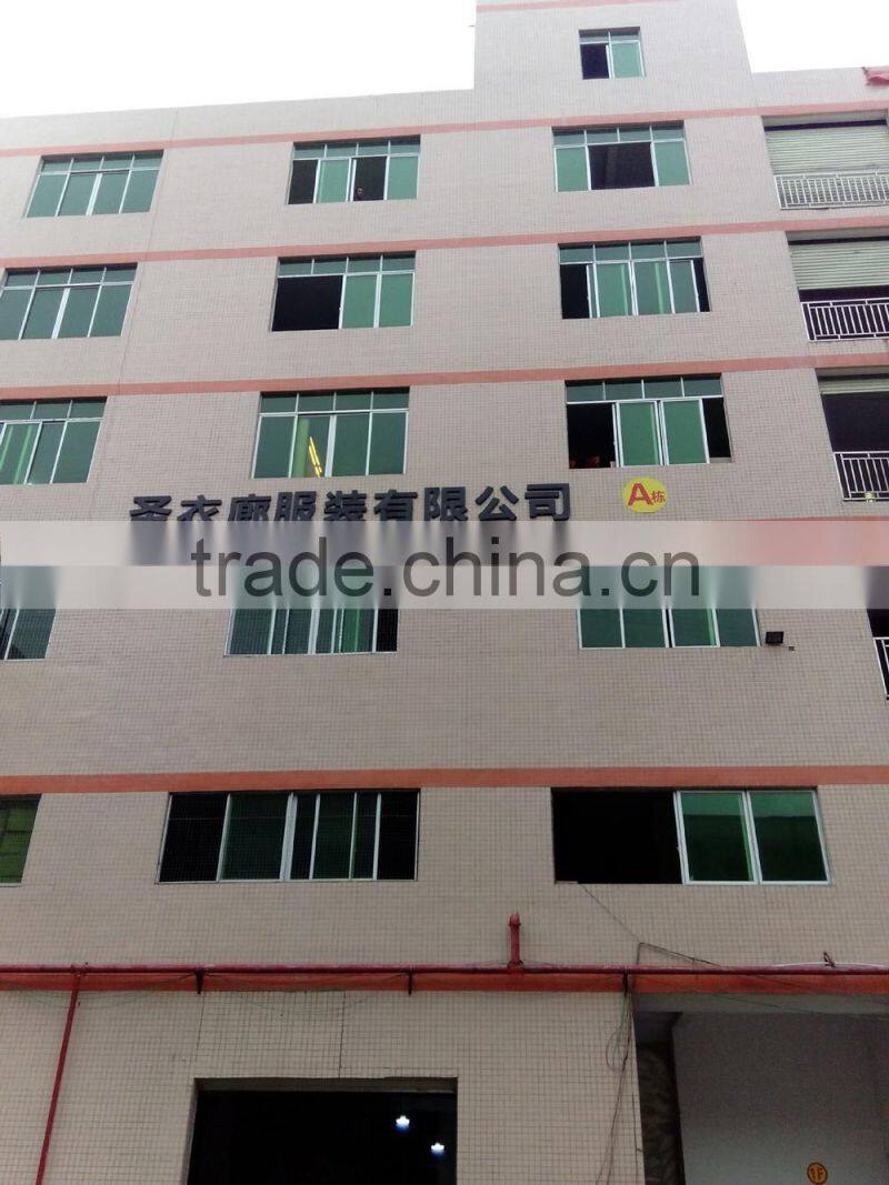 Guangzhou Shengyilang Garment Trading Co.,Ltd. is a professional manufacturer of T-shirt , Polo shirt , Singlet , Tank top ,pants, Hoodie and Jacket. We have dealt in this industry for more than 15 years in the name of " zhongtian". Our customers are mainly from USA, Canada, Russia and Singapore. To provide our customers with what they need is our goal. Honesty and credibility is our advantage in this field. We always put the high quality in the first place cause we aim to push our products in high end markets.