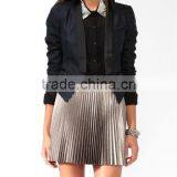 - Fashion New Arrival V-neck Corns Metal Leather Jacket Tight Black Zipper Short Women's Clothing
