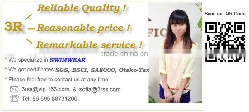 3R E-Business Co., Limited Shishi City is a professional manufacturer and trader of swimwear, beachwear, cycling wear, underwear, etc., located in Shishi - one of the most famous China Casual Wear Cities. 'Reliable quality, Reasonable price and Remarkable service' is our company's development orientation. At present, we have own a big manufactory. Our production facilities occupy an area of 3,000 square meters, with 200 well-trained employees. Our yearly output capacity has reached 3,000,000 pieces of swimwear. All the leading products are exported to Europe, America, Canada, South Africa, etc. Taking the advantage of Shishi City - one of the biggest supply centers of fabric & accessories, 3R team pays more attention to developing new designs. Now, we have been a fix supplier of some European Brands such as "K", "MAG ONE", 'DOUBEL", etc. We believe our strength will sincerely help us become your faithful business partner. We'd like to provide you with the convenience of purchasing and visiting. We are looking forward to growing up with all our partners, building up a long-lasting and prospect future.