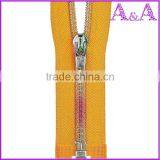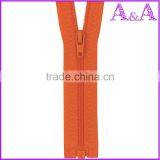 5# Colored Plastic Zipper for Cloth With Orange Teeth and Orange Tape O/E A/L